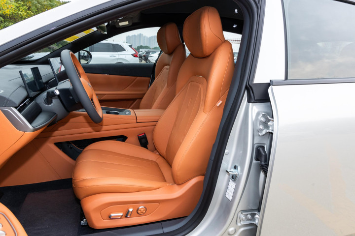 内饰部分体验时感受颇多。整体还是沿袭eπ007的极简设计风格,车内没有什么复杂堆叠,大屏和物理按键搭配,看上去主次分明。中控台上一块15.6英寸悬浮大屏以及10.25英寸矩形液晶仪表都是标配,视觉观感很大气,屏幕清晰度、响应速度都很高。HUD抬头显示可以直接在驾驶状态下推送路况、速度等关键信息,不用低头,安全性提升不少。我点开导航、车机切换,发现这次主打的是高通骁龙SA8295P芯片带来的天元智舱2.0车机系统,支持双AI大模型。实际体验多任务切换、语音识别,反应很迅速,而且menu菜单逻辑清晰。