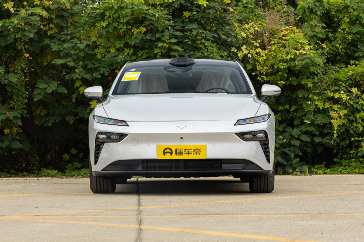 首先就是外观。eπ007+到店实车和官方图没太大出入,整体延续了现款eπ007的设计特点。它的前脸属于典型“新能源轿跑”风格——封闭式车头,LED日行灯从两侧上扬,远近光灯组和熏黑导风槽组合出“L”形样式,很有攻击性。说实话,站在车头前拍照,就能明显感觉到那种略微俯冲的车身气质,加上下方超大尺寸梯形熏黑格栅,纯电版本和增程版的细节也有所区别。体现出来的,就是更强的视觉冲击力,尤其对年轻用户来说,这种造型容易“一眼种草”。